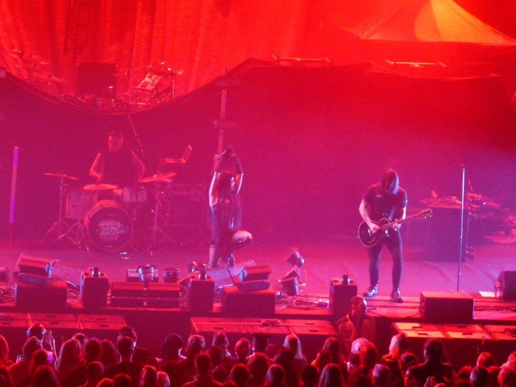 I was very impressed with goth rockers, LA based, three piece, Dead Posey, supporting tonight. All over the stage and in the crowd, lead singer Danyell Souza is the focus – at times crawling across the stage.