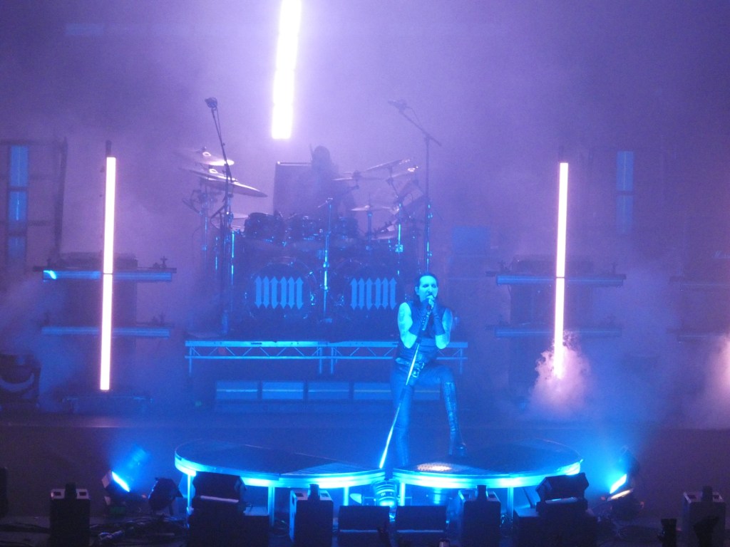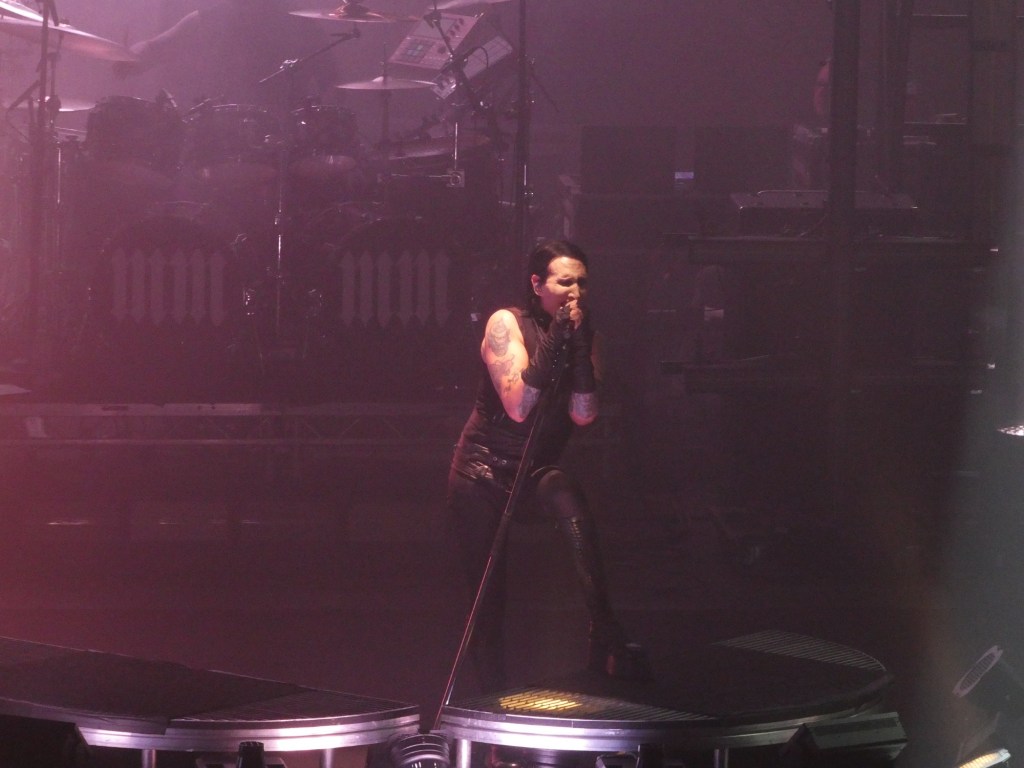 I have seen him once before at Reading Festival in 2001. It was at the height of Manson hysteria.ย As a live experience it was disturbing, exciting and almost terrifying. Fake blood, whips, crucifixes lifted from the stage, screams, sounds and Manson in various raging characters.