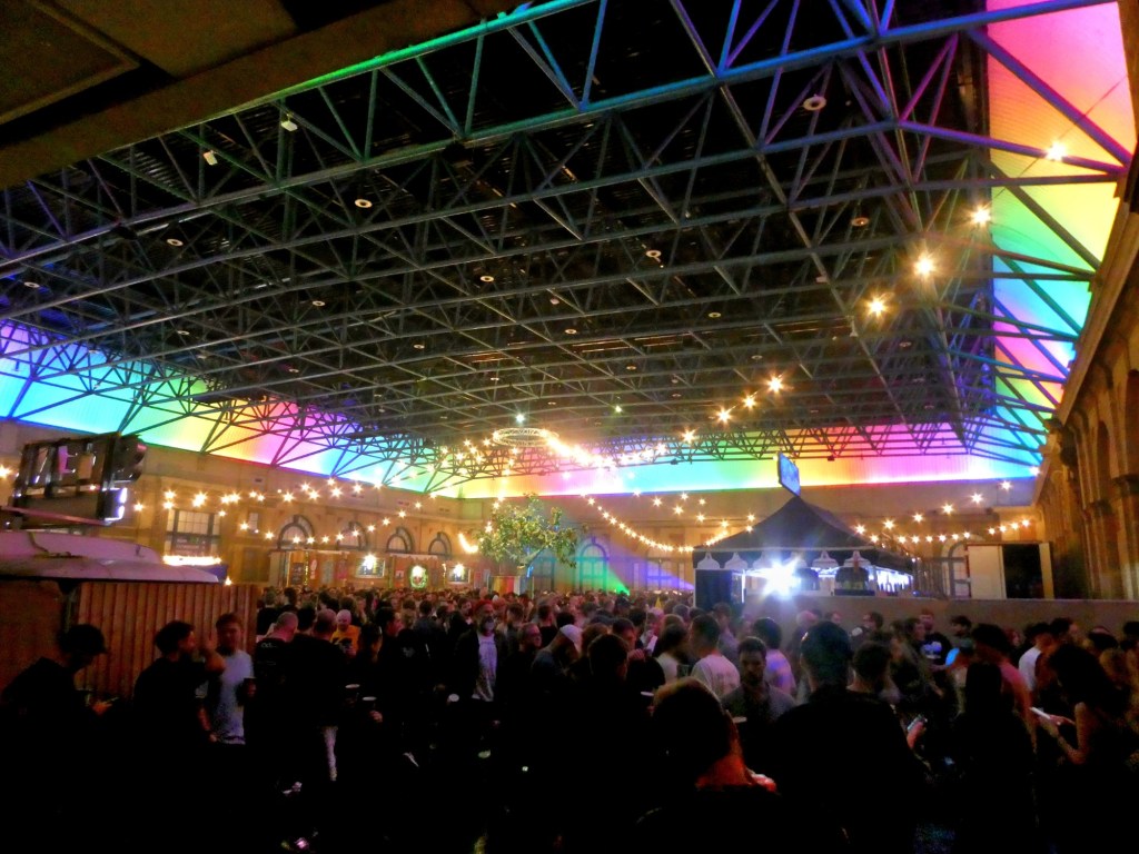 There is a huge bar room before entering the auditorium. It is an old fashioned exhibition centre and feels like it. Cavernous halls. Drinks were absurdly expensive (ยฃ9 for 440ml can of cider/ ยฃ6 for a 330ml Neck Oil) and queues for drinks and bogs nauseous. Most of the toilets appeared to be up stairways packed with women in queues, so the gents were hard to access. Downstairs people queued for festival style plastic portaloos which capture smells so beautifully.