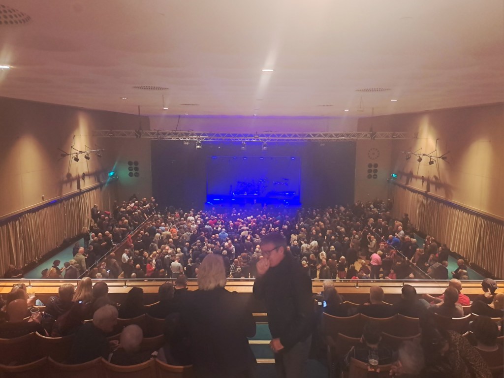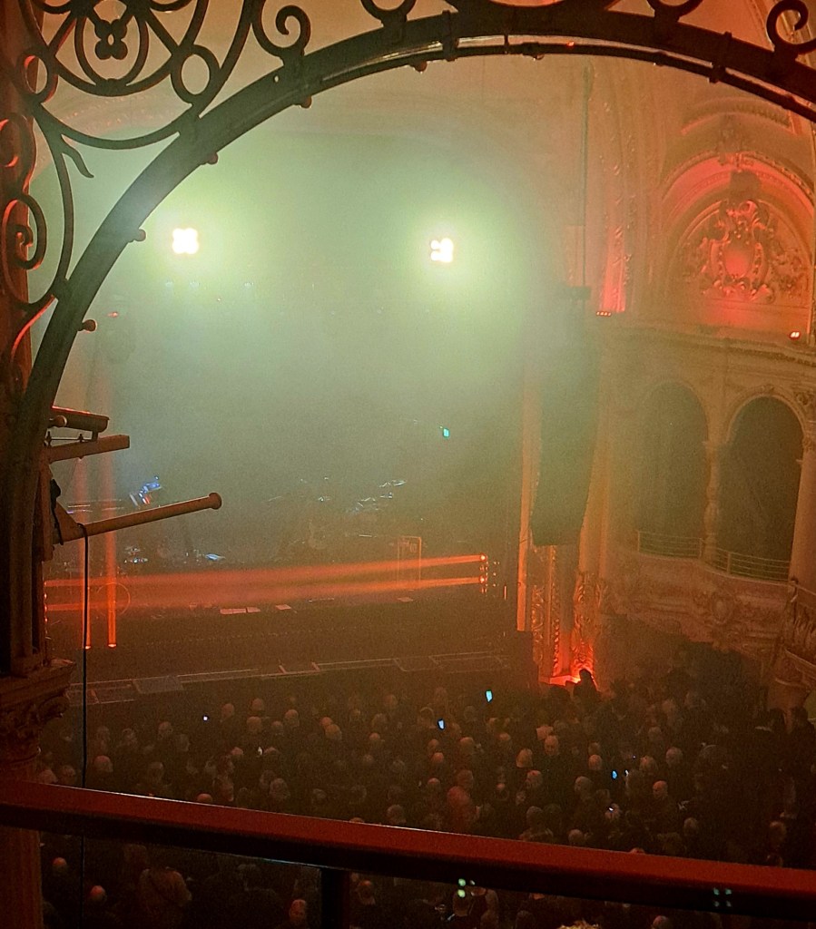 Despite the sprawling building, the venue itself is relatively small with a 1,500 capacity. It reminds me of my old school hall (that was built three years later I find), even the balcony where I am seated, at the rear (third row centre – eventually). It could be a scene from the Ramones’ Rock’n’Roll High School film. The difference is the lower, standing balconies to each side. Novel.