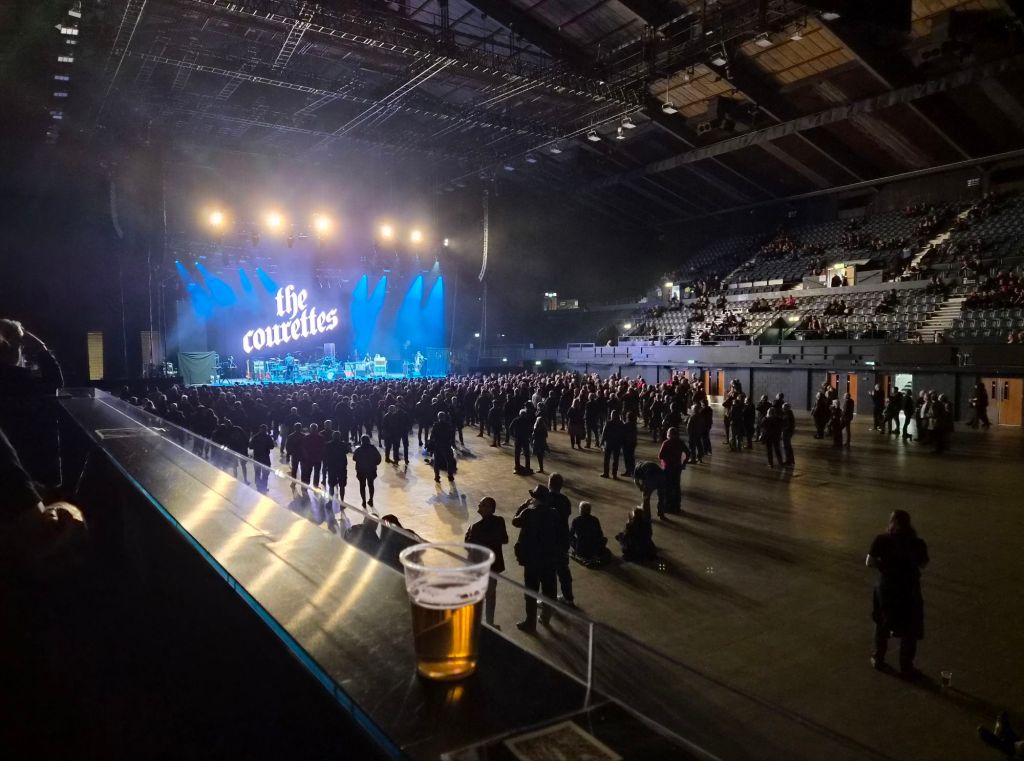 With four bands playing, it’s a very early start – I really wouldn’t have fancied standing from 5.30pm as many had to. When The Courettes kick off, and boy don’t they, the hall is sparsely populated and I started to wonder what the 12,500 capacity space would look like – I needn’t have worried as it filled later. Some of the very back is curtained off so I’m guessing on an eventual crowd of about 8,000.