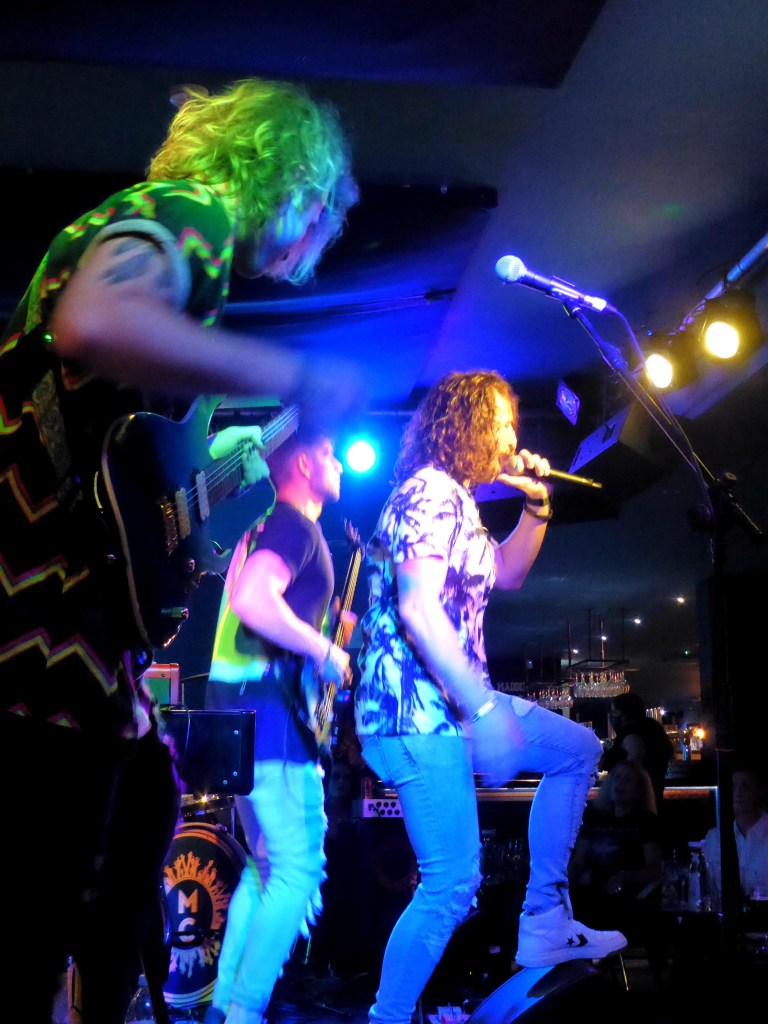 Our stage proximity has me keeping an eye on the guitarist Sparkxx’s red wine which wobbles to the performance and is finally rescued when the tension of a wine shower gets too much…it would have been quite rock ‘n’ roll I guess.