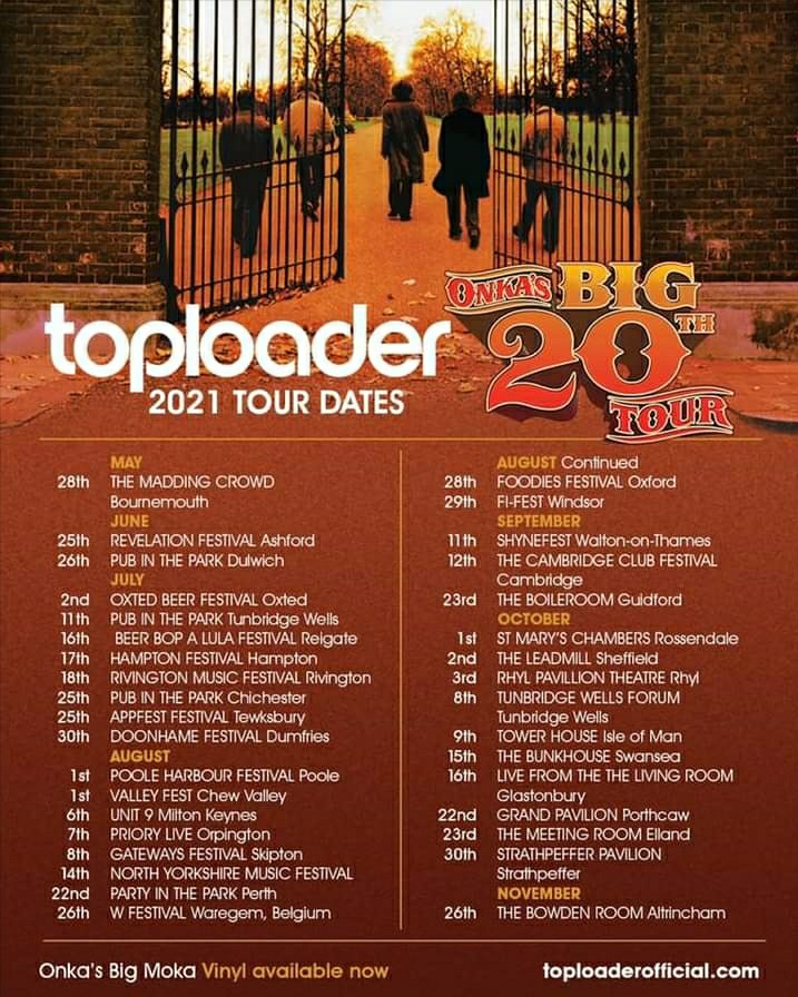 Here we are then. Toploader’s first gig in 18 months and one to kick start, all being well, this big tour to commemorate 20 years of their first album ‘Onka’s Big Moka’ – released in Novemeber 1999 so a virus induced belated commemoration. The album reached number 5 in the charts selling 2 million copies, spending 6 months in the chart. I bought my copy 3 days ago in a second hand shop. Not exactly a hard core fan eh but this was a local opportunity not to be missed.