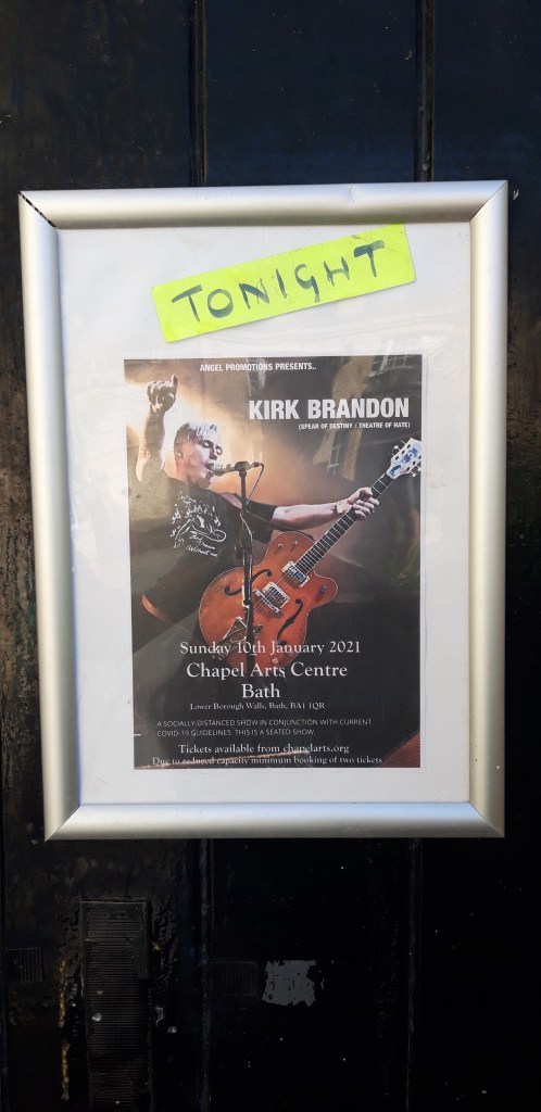 We finally made it to Bath. This solo Kirk Brandon gig was booked for 13 November 2020 originally. I bought tickets in the desperate search for a live gig that would likely go ahead. A socially distanced and seated arrangement that was still thwarted by restrictions and rearranged several times until we were finally able to stick on June.