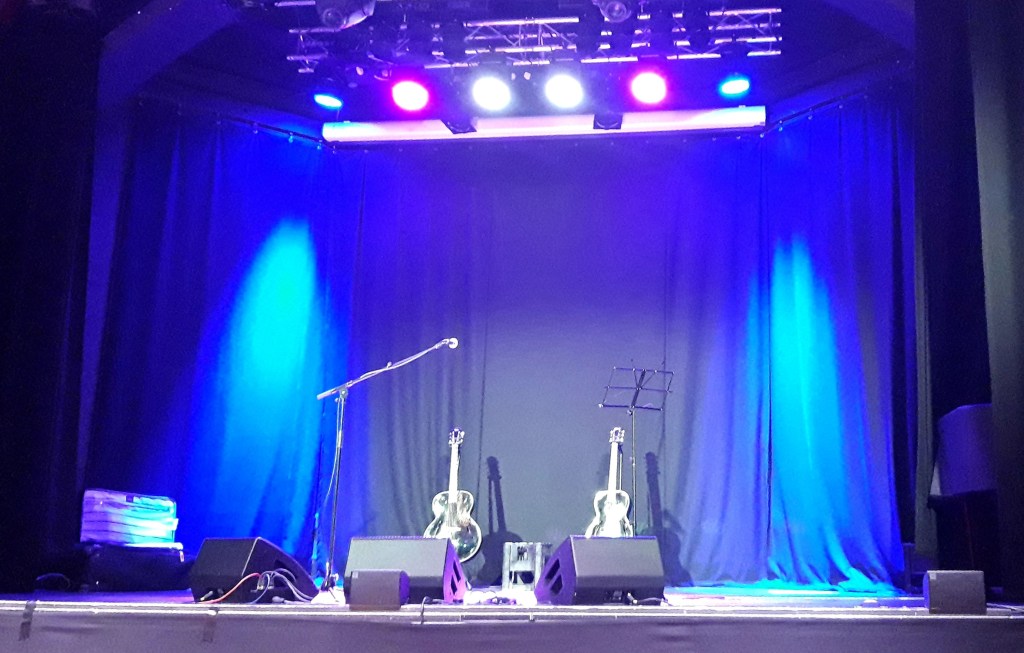 (One of the reasons I started recording some notes from the gigs I go to was to park photos in some context. I’m usually armed with my Panasonic pocket zoom and a mobile phone and only include my own snaps. Obviously at the Covid restricted seated events you can’t wander about and get the best light. This place was good though. The lighting was sympathetic, good view – even enough to check the turnup size on Kirk’s jeans – got to keep an eye on the fashions – and no bobbing heads and jostling so some benefits eh.)