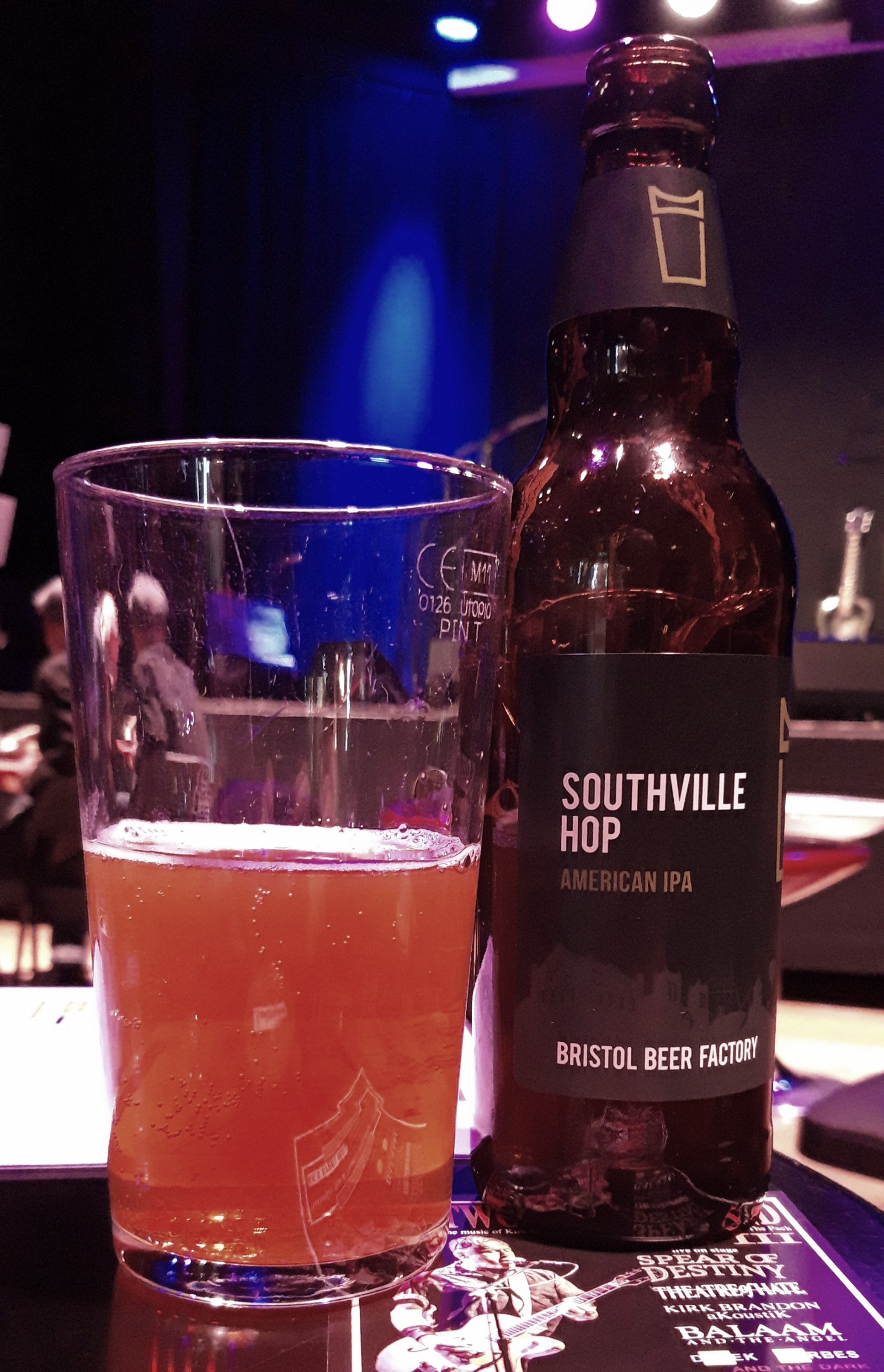 The rare opportunity to actually walk up to the bar for a beer was explained carefully on the Arts Centre website, quoting the Bath & North East Somerset Council licensing officer – as it is considered a concert hall and not a pub then as a ticketed event we were free from the shackles of having waited table service. A double edged sword this given our lack of food. 🙄 (I wonder if I’ll find this excessive detail of interest in years to come.)
