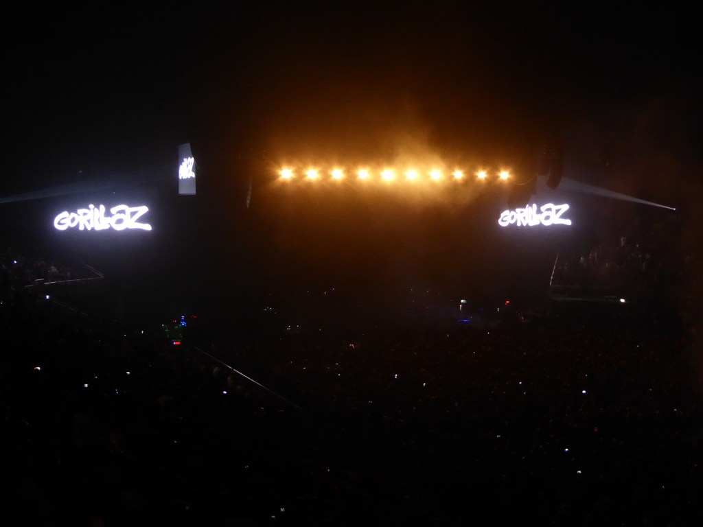 When we arrived for this – with gig buddy Dave (DPi) for this indulgent excursion – and were sat in Pizza Express in the O2 outer concourse the diversity and cheeriness of the passing crowds was striking, a lot of different age groups – the different genres Damon has brought into Gorillaz does a great job at broad appeal without any pop blandness. The crowd feel outside translated into the party or carnival feel inside. As with the other recent post-Covid restrictions gigs I’ve been to, I’m left reflecting that there is no better time to see live performances. Everyone is so up for it and grateful.