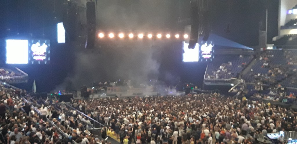 This is the first time since doing these blogs of my gig going activities that I’ve been here. I am wary of such huge venues, they do have a place and the only time I’ve felt hard done by here is when sitting right up on the top tier for The Killers – and Brandon Flowers had a sore throat. I really wouldn’t bother with any seat above the mid-tier boxes. Everything else has been a good experience. This evening it was all standing on the main arena floor but if it is seated on the flat you want to be in the blocks in the front half or I wouldn’t bother. I took my mum to ELO and sat/stood by a chair in the front half and that was fine.