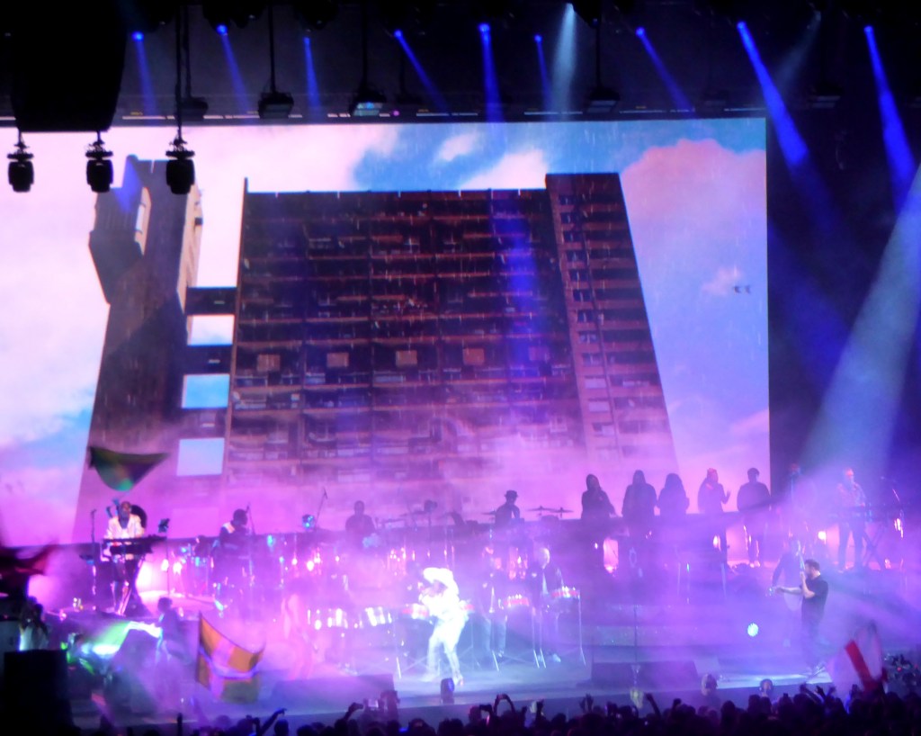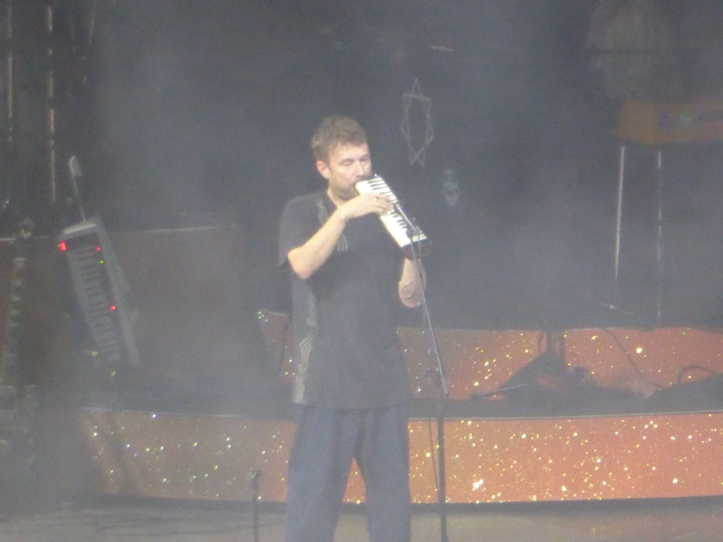 Damon remains as the conductor of about 15 performers on stage at times, up to 25 by the end, orchestrating this diverse 21st century sound. A jaw dropping feat. He is singing mainly but also plays guitar and the distinctive melodica makes an appearance – I think that’s what it is – my sisters used to play them.