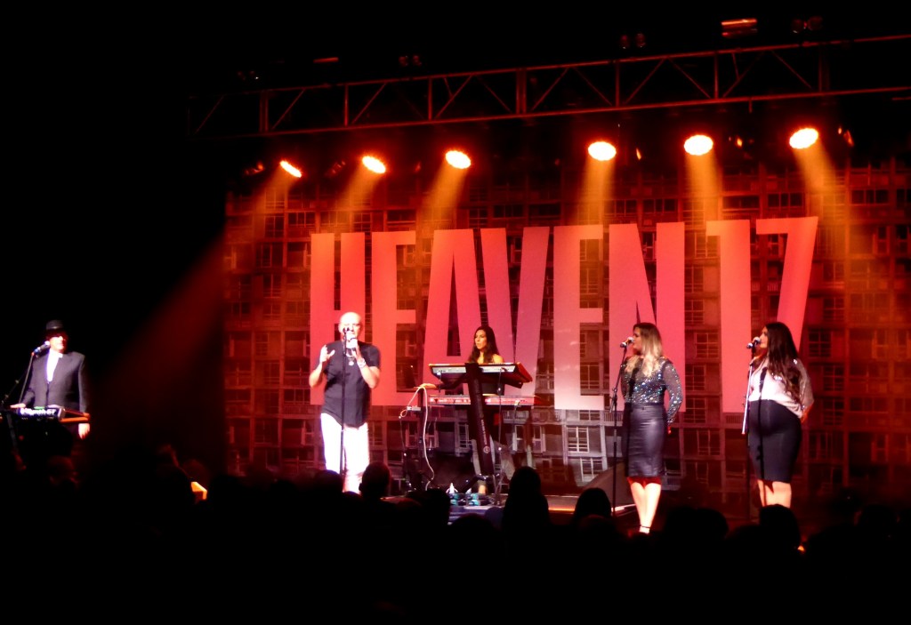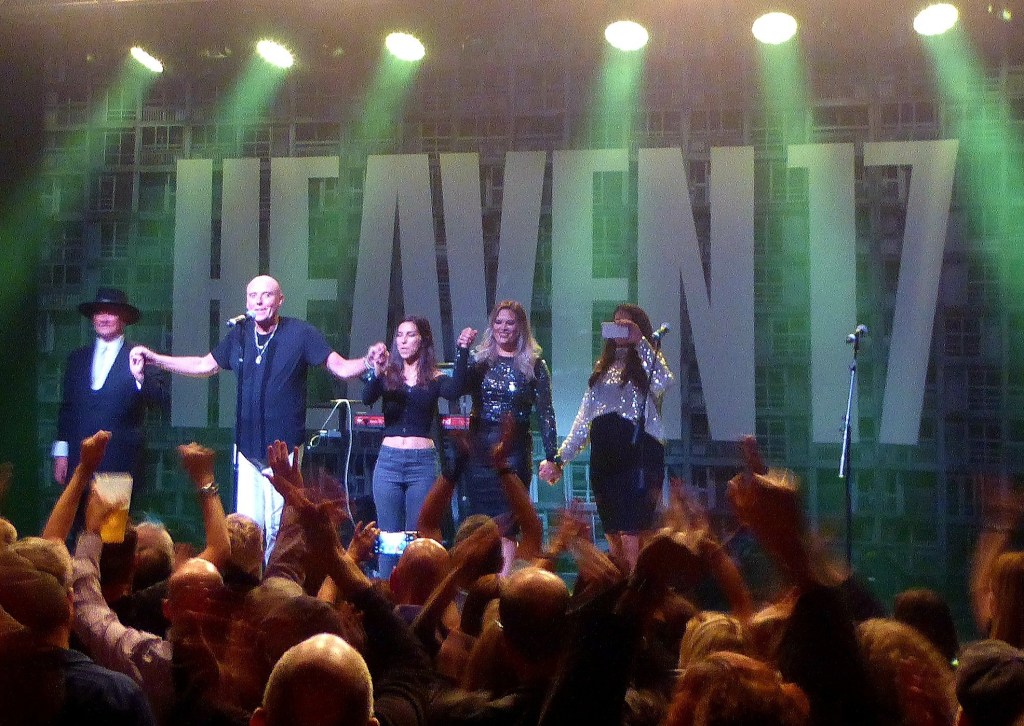 Heaven 17 open with Height of the Fighting. The band are originals Martyn Ware and Glenn Gregory accompanied by two backing singers and a second keyboardist (a different one to a few years ago) to keep Martyn Ware company and heighten the 80s electro beat.