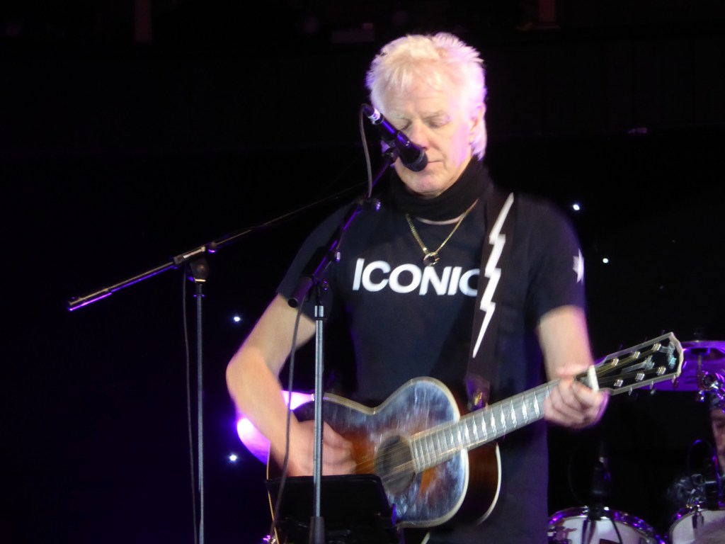 At the end of the main set Mark Brzezicki comes out from behind the drums to do the announcements – the thank yous and the welcome to new bassist Gil Allan. Then they go off to cheers and applause to return with Restless Natives (another Adamson penned song of Scottish pride).