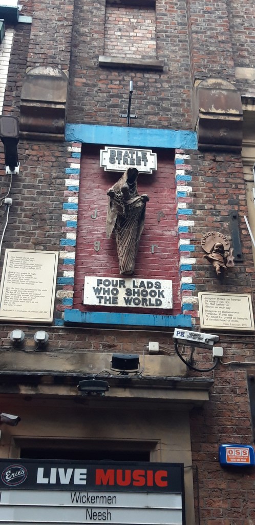 I took the train up from Birmingham (another gig the night before) with gig buddy Dave, arriving in the morning to give us some time to look around. Bags dropped off and a few pints in the Doctor Duncan pub to dodge a heavy shower and we were soon heading for The Cavern, and up the Beatle Street of fab four nostalgia, passing legendary band spot Eric’s.