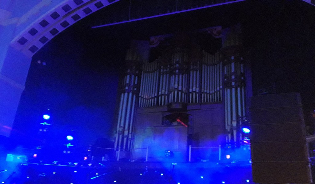 The stage is backed by a 100 year old pipe organ. There is a large seated balcony which is closed off tonight, with netting obscuring the upper floor. It quotes a total 1300 seated capacity but I couldn’t see confirmation of the standing capacity downstairs. I guess about 750. It’s quite full, without being sold out or too packed. As Covid rises again and Christmas approaches this is no bad thing. (Not that I need have worried as I caught Covid anyway a few weeks later and screwed up Christmas totally.)