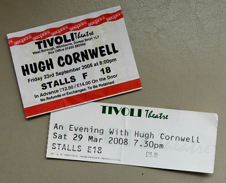 There’s also been a Bridport Electric Cinema gig (2013), The Brook, Southampton (2009) and a few Wimborne Tivoli Theatre gigs (2005, 2008), one interspersed with Hugh reading extracts from his autobiography and various signed books and CDs acquired at these.