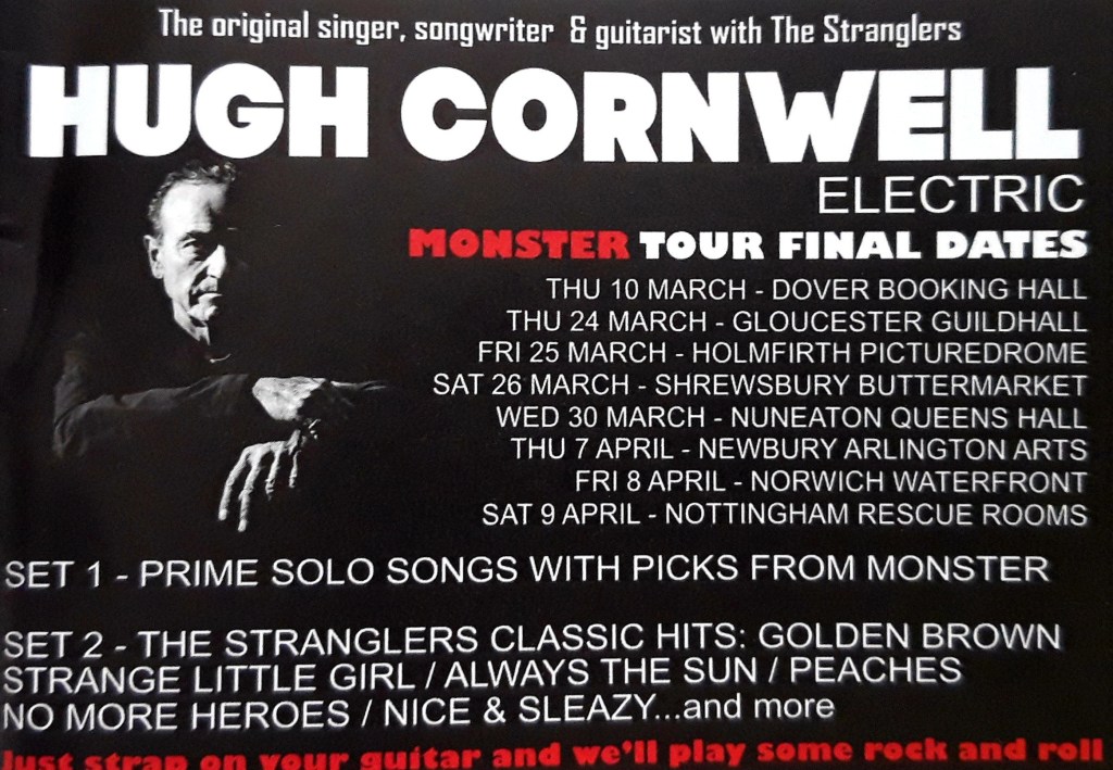 Not long since I saw ex-Strangler Hugh Cornwell, now 72, supporting The Undertones in Frome, but this is a much more focused affair: Hugh and his band only tonight. The first night of a three day weekend gig hat-trick with gig buddy Dave starts with a cab ride from Chieveley M4/ A34 Services to The Arlington Arts Centre. (Thanks to my sister, mum and nephew for the lift up there 👍.)