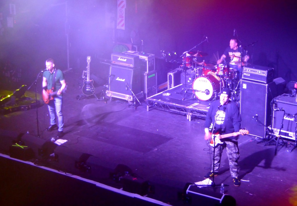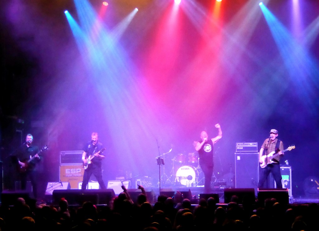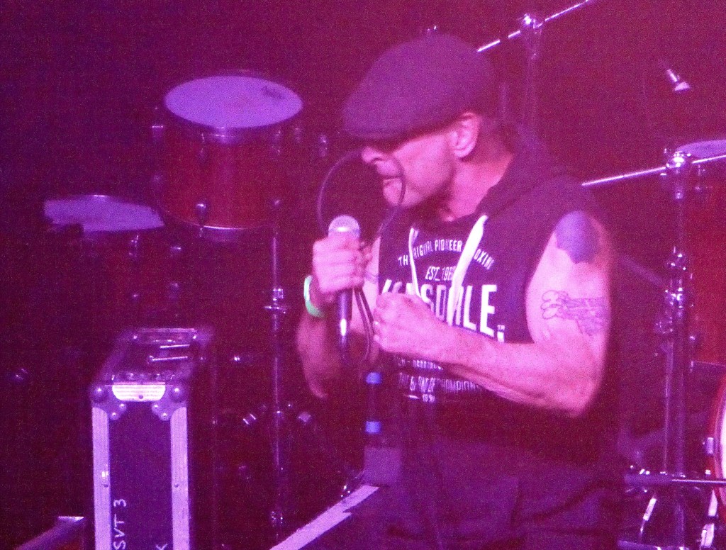 The Cockney Rejects are listed like a joint headliner in the ads for today and they’ve certainly brought a lot of fans in. It is an onslaught – Oi Oi Oi – what a handful. I’ve got a couple of singles by them, almost inevitably as a West Ham fan, and live they are quite mesmerising. You can’t take your eyes off them in case something happens. Jeff, no longer known as Stinky, Turner (aka Geggus) spends to whole set in his Lonsdale gear shadowboxing his way through the songs. Full on. Brother Mick Geggus maintains some stability on bass.
