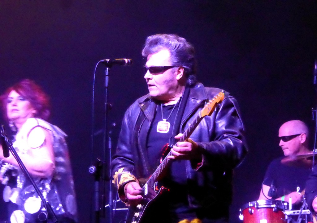 Time to liven up with The Rezillos and I go downstairs to see them. I never saw them back in the day but after they supported The Stranglers in 2015, I saw them several times. Always lively, a bit crazy and some good sax. I like that 50s sci-fi and cartoon imagery stuff – Flying Saucer Attack, Destination Venus – they revel in. I’m wearing my luminous Rezillos t-shirt today but the lighting isn’t exploiting its full ‘glow in the dark luminous capability’ fully.