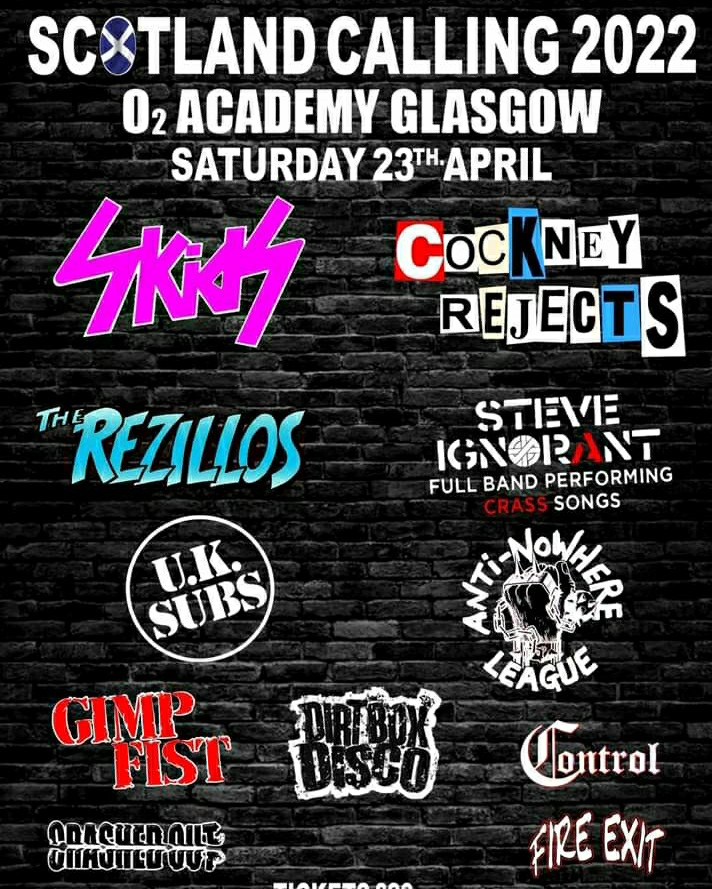 Skids, Cockney Rejects, Rezillos, UK Subs and more 23.4.2022 at O2 Academy Glasgow