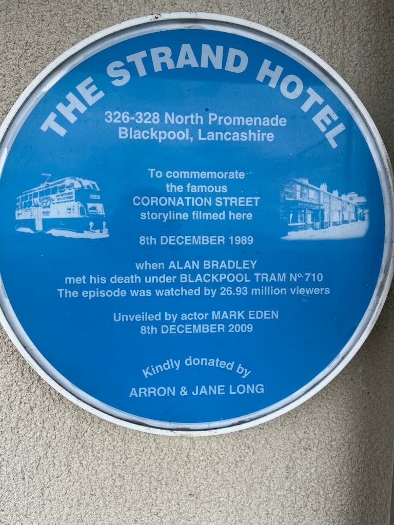 Saturday morning. Arrgh. We went too early and sprinted on day 2 of this marathon. I can hardly stand up first thing. Legs swollen and generally in a mess after yesterday. I had to dip out of the morning excursion with my Rebellion gig buddies to find the blue plaque to mark the tram killing of Coronation Street’s Alan Bradley. They succeeded. I had to make do with a WhatsApped photo while I watched the Commonwealth Games on TV for several hours.