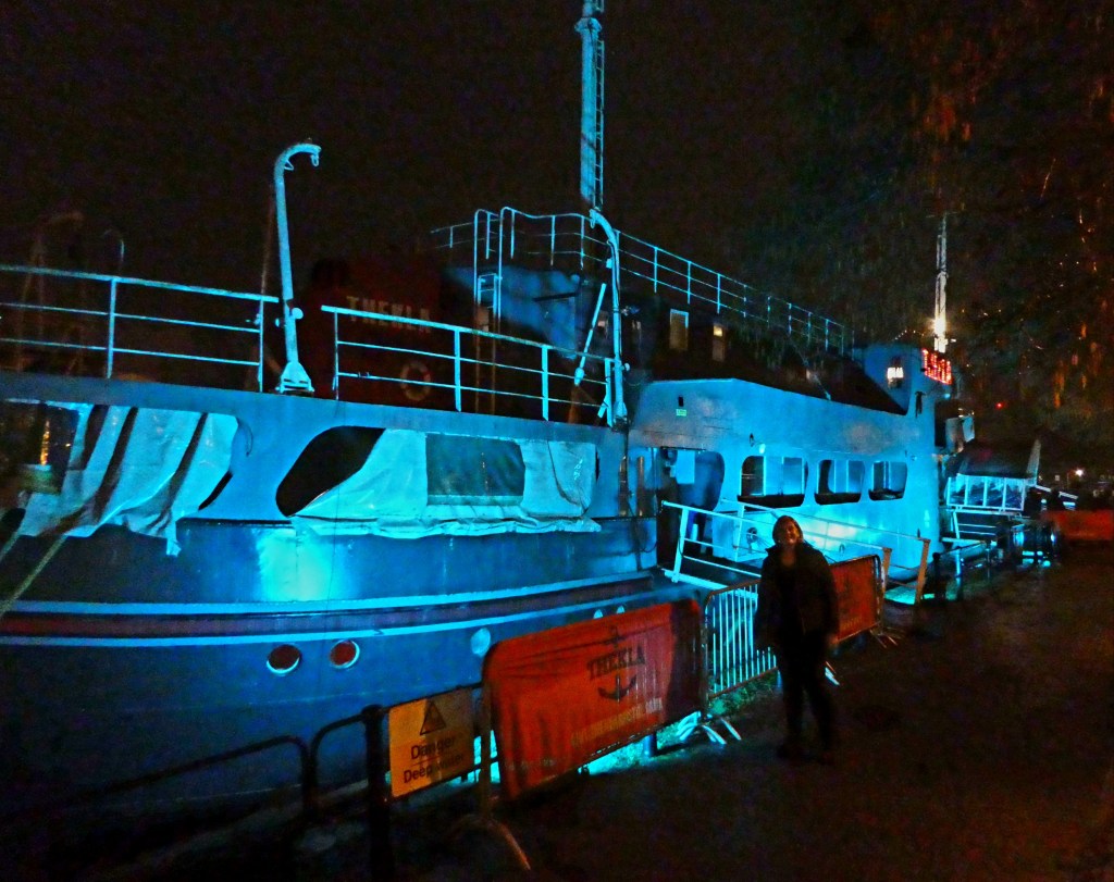 This is my first visit to Thekla since starting these blogs, and the first since the recent refurbishment. It’s a novel venue… on board Thekla, a small cargo ship built in 1958 which ran aground and was later recovered, abandoned and revived to live again in Bristol docks as a music venue from 1983. It remains moored up – don’t worry, you’re not going to sea.