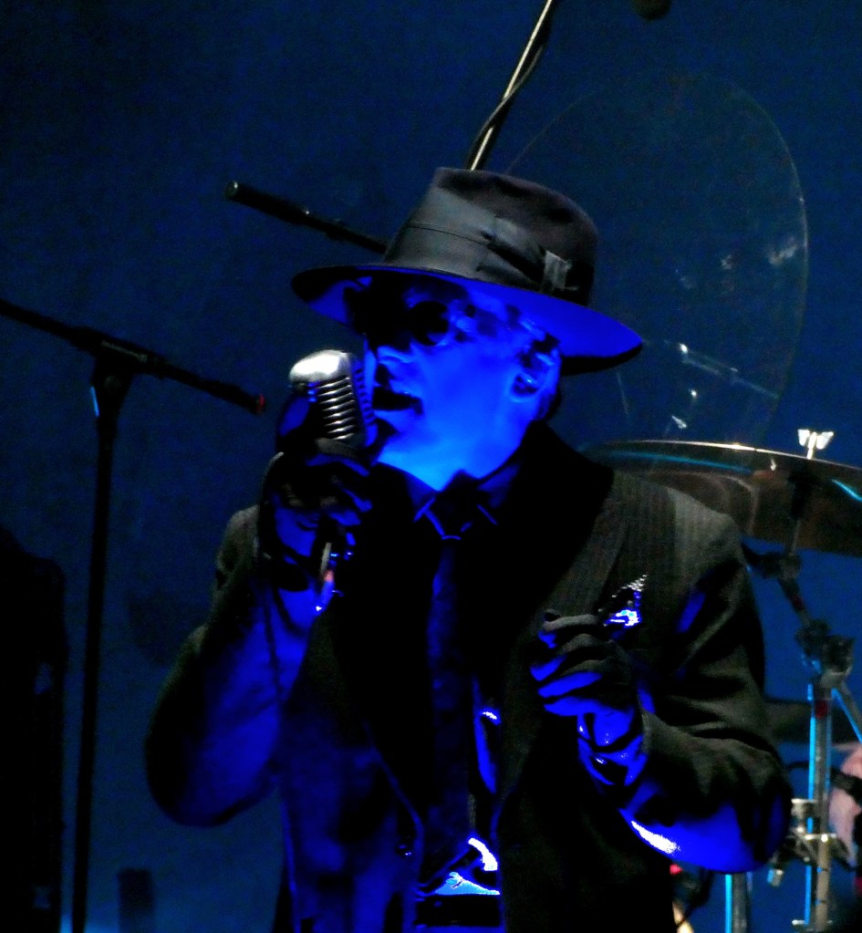 Vanian is ghoulishly lit in his black hat. Always stylish. He wanders all over the stage and off it, behind the drummer and whipping his mic cable out of his way as he goes.