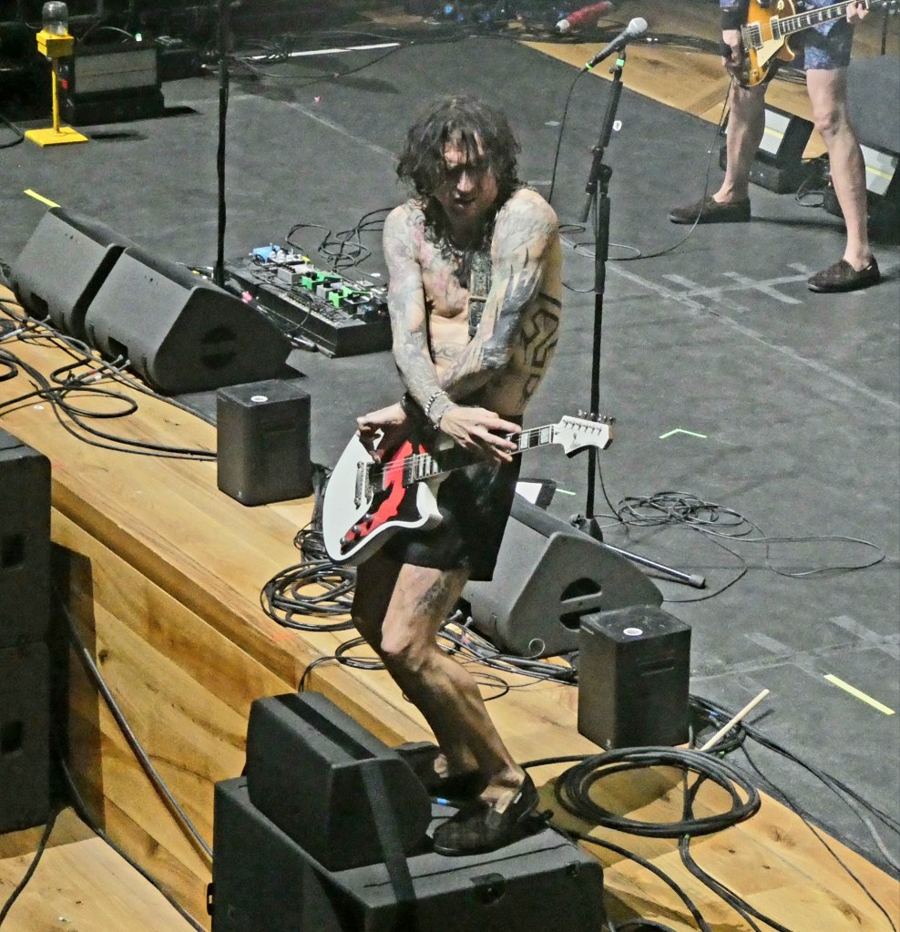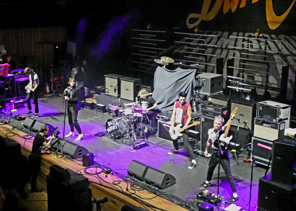 Great bonus to see them tonight – the audience warmed up as they continued. With the over stage view I grabbed a video of this one with a novel opening: Mad Mind. I love the poses; the guitars are especially Ramonesesque. Baby Drummer is my favourite – an established top tune of theirs.