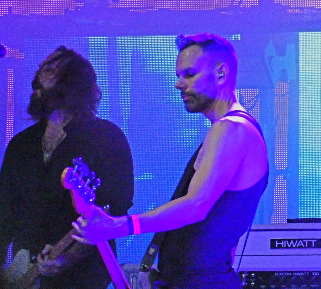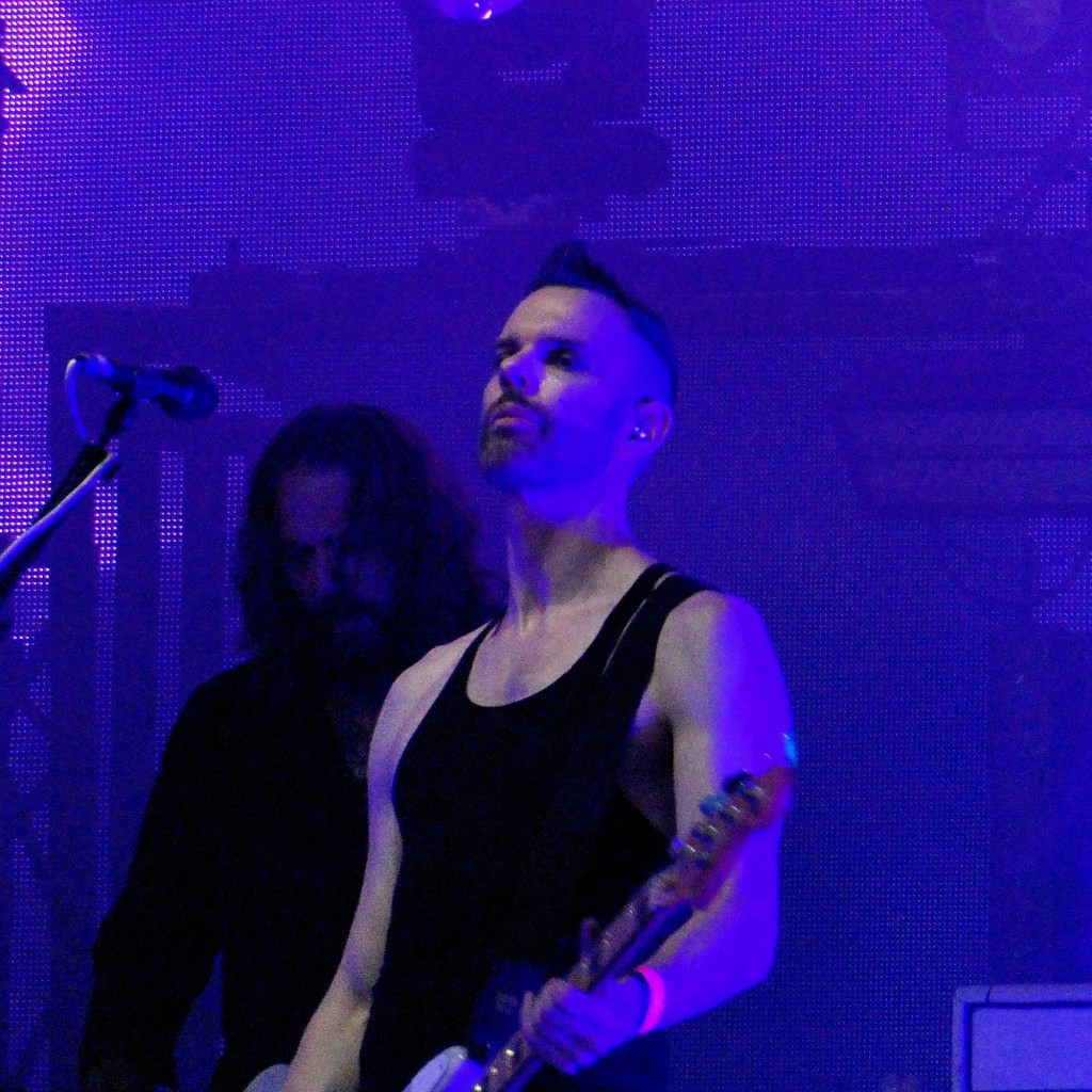 After a first album track, Bionic (recorded here from my mixing desk leaning spot), I manoeuvre my way further forward, down the right hand side to get a better pic or two. They’re into Surrounded by Spies, another last album cracker, when the music comes to a halt – Molko stares into the front of the crowd and there is a fight going on. “We can’t continue until you calm the fuck down!” “If you can’t mosh without beating the shit out of each other, you can’t mosh”, “Enough!” I couldn’t see how things calmed but thank goodness they did. “Everyone take a deep breath.” On we go.