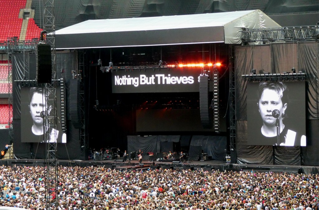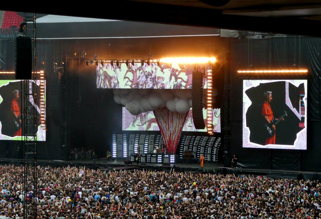I generally subscribe to the rule that football stadiums are best used for watching football matches. Everything else is a compromise and I even prefer a large field to see a live band in. Some bands are just too popular to resist though and if you’re in a seat, you will get some shelter to trade off against any echo, with a bit of elevation to see the stage and the screens, with sight of the band in any detail being a bonus.