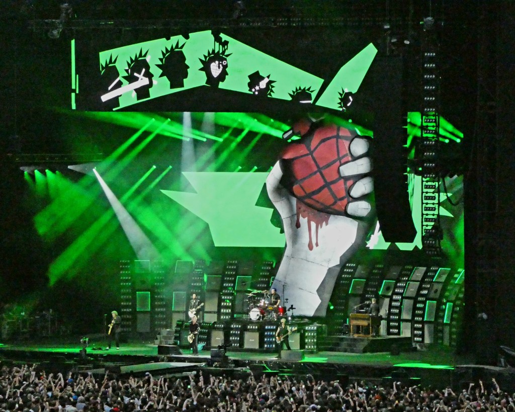 Several more from the Saviours LP and the stage went green. American Idiot exploded into life. I wonder what it was like down in that front standing section. It looked like joyous mayhem.