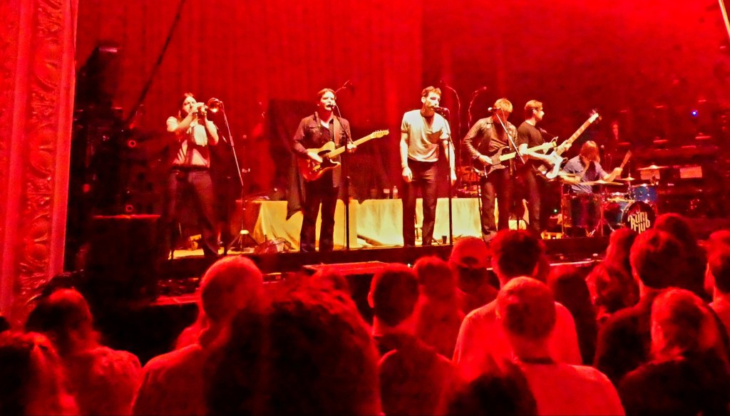 We are down front left for Red Rum Club, just in front of Joe the Blow on trumpet. It’s a short and very sweet set. A handpicked selection of eight songs to warm up the audience, including faves Vibrate; Eleanor; Kids Addicted and Would You Rather Be Lonely. Glad we got in early.