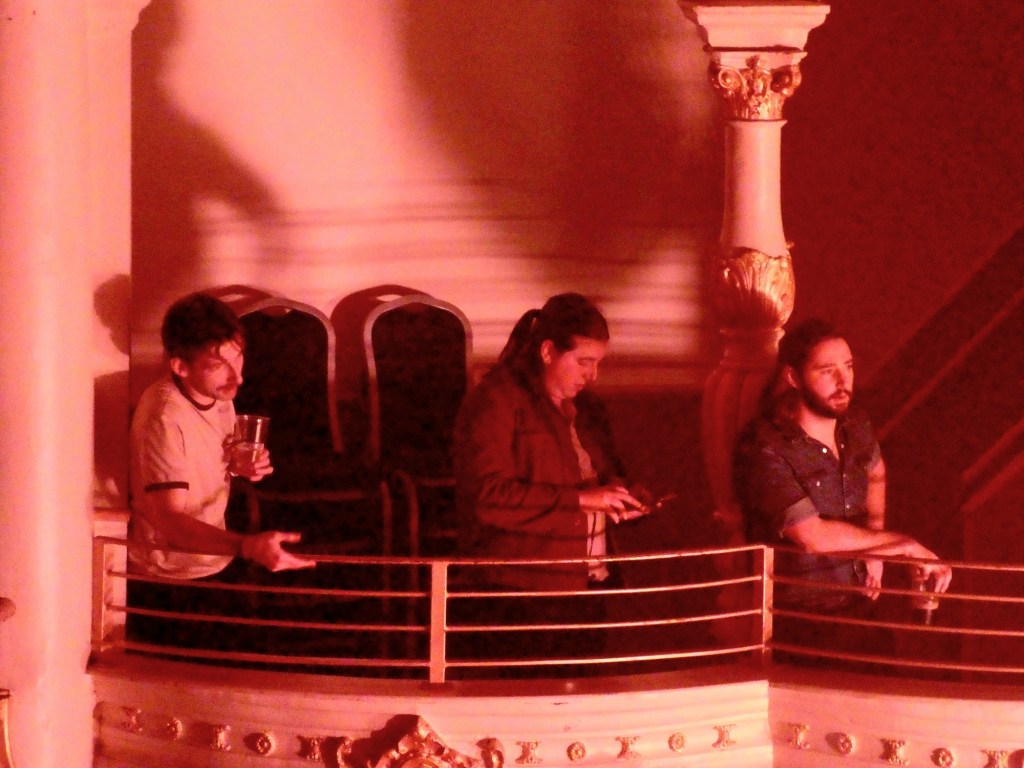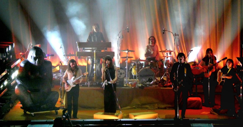 Rationing my standing, I go for a hike upstairs and find a seat in The Gods to wait for Blossoms. It is a lovely audience. Lovely = no beer throwing and a polite gathering with healthy gender mix and lots of ‘excuse me’ replacing drunken toe mashing stumbles through to the front.