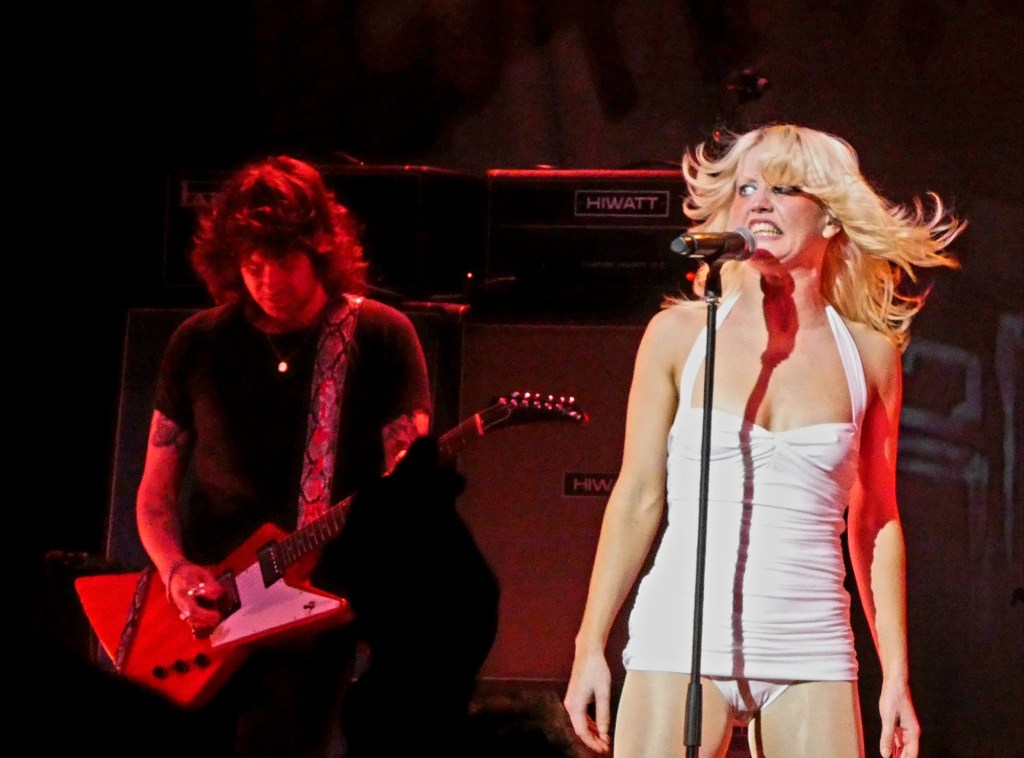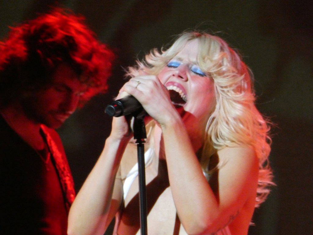 On they come. Bright white spotlights illuminate Amy Taylor and another creative outfit with essence of 70s New York Debbie Harry. The click and clunk of guitar jack plugs going in. Crash – we’re off with Doing in Me Head a full-on instant hit from the new album. The place just explodes.