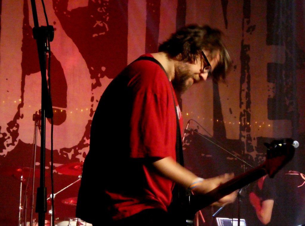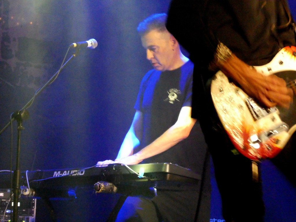 The keyboards and electronic sounds are important mind – Iain Baker is mid-stage and side on, described also as ‘programmer’ and at the laptop between songs and writhing over the keyboard during them. He’s intense and enjoying himself immensely. We are among 200 people and the band are all playing it like they’re doing Wembley. Impressive and grateful commitment.