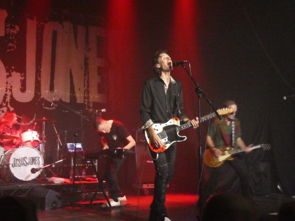 I am instantly surprised when Jesus Jones come on, as to what a guitar-look they have, when the term techno indie rock is what springs to mind – all those weird electronic noises and beats in their singles. Two guitars and a bassist up front, with lead singer Mike Edwards always with his guitar.