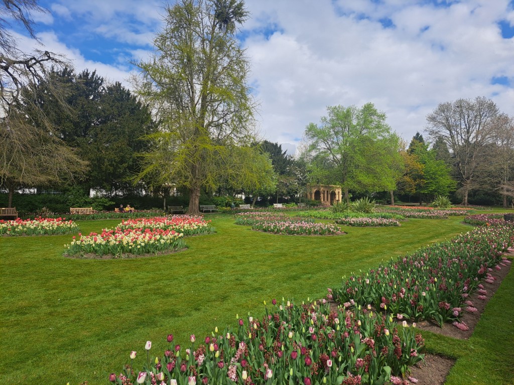 Lovely parks and a few convenient large pubs near to the bottom end of town, where the venue is (such as the Old Library).