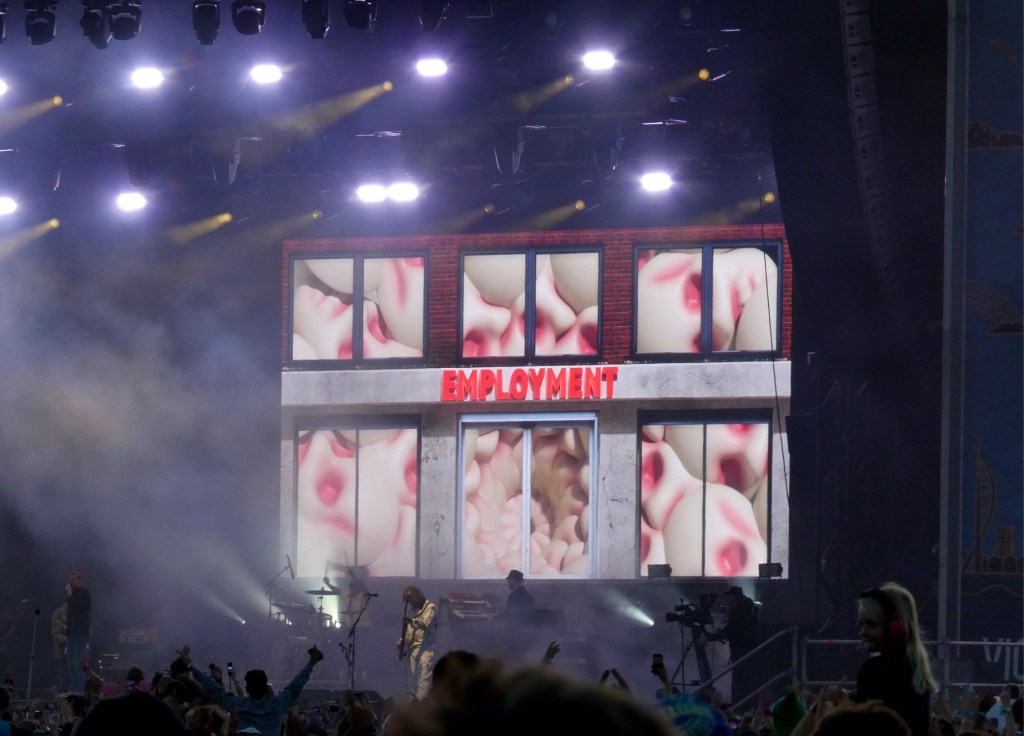 With timings drifting, I wanted to see the Sheds right to the end, before the trek back to the Castle Stage (it seems longer when your knees don’t want to go). Public Service Broadcasting were one of the bands I hadn’t seen before and wanted to see most. I’d been listening to their Race for Space LP a lot and still am – novel – hints of Kraftwerk. All the more annoying then that I only arrive for the last few songs. Argh.