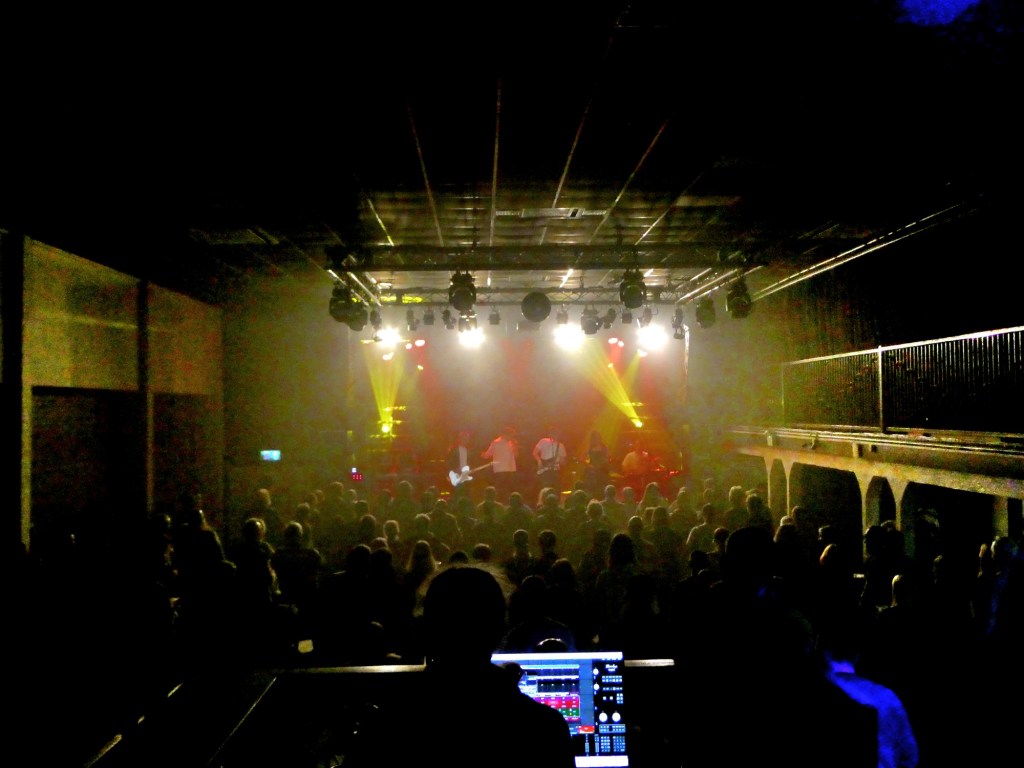 We got in early about 15 minutes after 7pm doors opening. Managed to nab some stools up by the bar at the back and looking over the mixing desks and lighting control boxes. Curiously quiet this evening and the upper viewing balcony is curtained off.