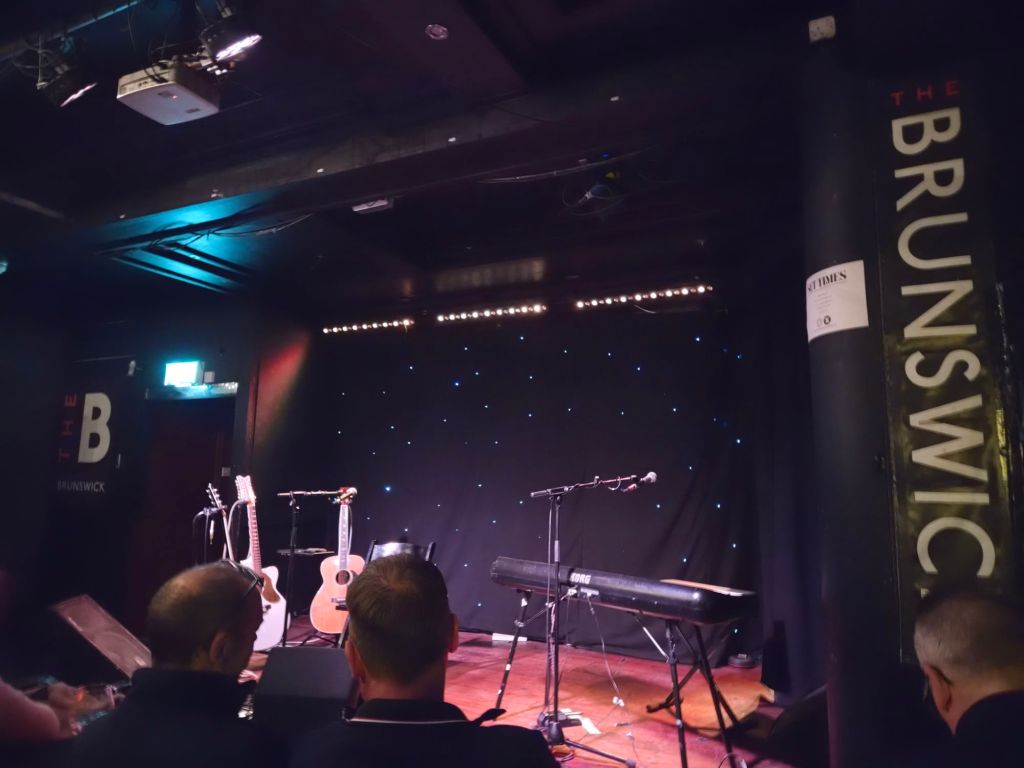 Tonight, four of us have driven from Chichester to Hove and enjoy chicken burgers and a few drinks in the pub part of the venue beforehand – worth booking. I’m on the alcohol free, amongst the excellent craft ale and IPA selection.