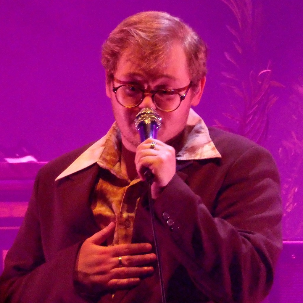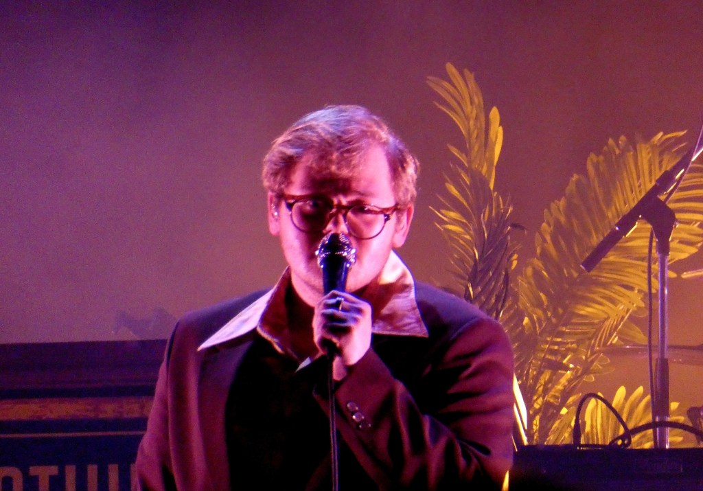 Alex Moore greets the excited crowded like a smooth northern game show host – I’m waiting for a ‘great, smashing, super’ – this musical anti-hero is dressed in the height of anti-fashion. Look at that shirt collar. Has he been plundering his grandad’s wardrobe or has a fashion designer got to him. Perfect. I think of Jarvis Cocker and of seeing Morrissey with his NHS specs and hearing aid for the first time.