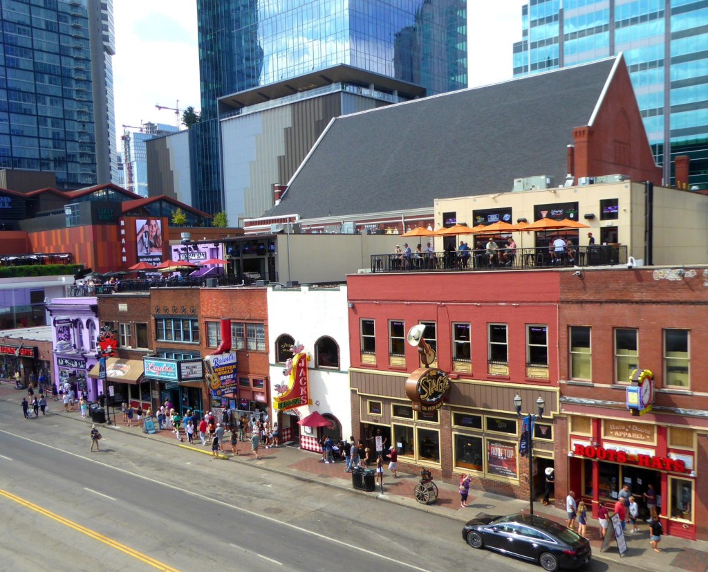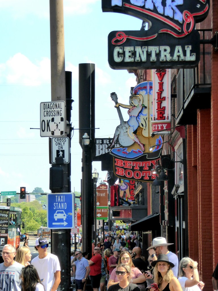 We arrived on a Friday afternoon, having driven from Gatlinburg in the Great Smoky Mountains, and took a walk from our hotel, down Printers Alley through a few blocks to the main crossroads in The Broadway. We stood on the corner waiting for the white man to allow us to cross and I looked over to Honky Tonk Central – a three storey corner building with all its big windows open and a band playing on every floor. I looked up the street: bands playing in the buildings both sides as far as I could see. And down the Lower Broadway more bands, more bars, more music. What a fabulous racket. I felt pretty emotional. Here I was: I’d made it to Nashville, Tennesee, Music City….. ‘Nashvegas’.