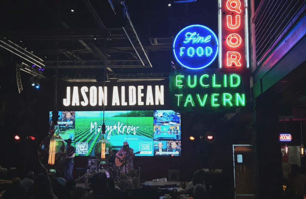 Jason Aldean on the south side of The Broadway is a smarter restaurant venue. We had a good night on the upper floor being ushered to a front row table after a wait at the well stocked craft ale bar.