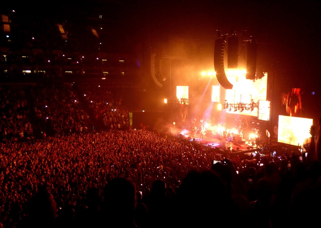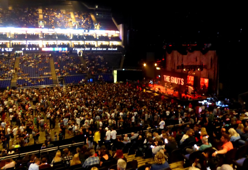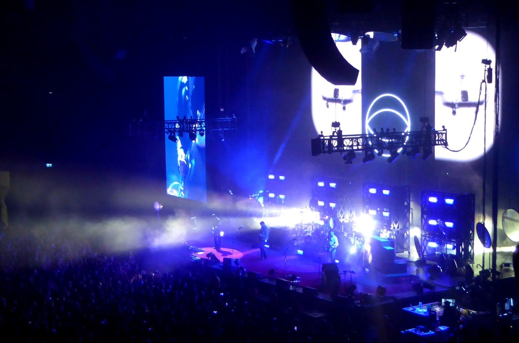 So on to tonight and we are down the front, early in, a row behind the barrier. 8pm and the place is still filling during their set. (Here with wife Sally and bro-in-law Rich tonight.)