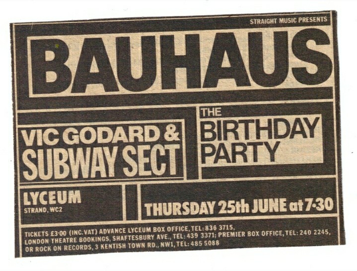 Before that…. 16 albums that I haven’t listened to so something to explore I guess. I did see The Birthday Party support Bauhaus, with the Subway Sect at the London Lyceum in 1981, 25 June.