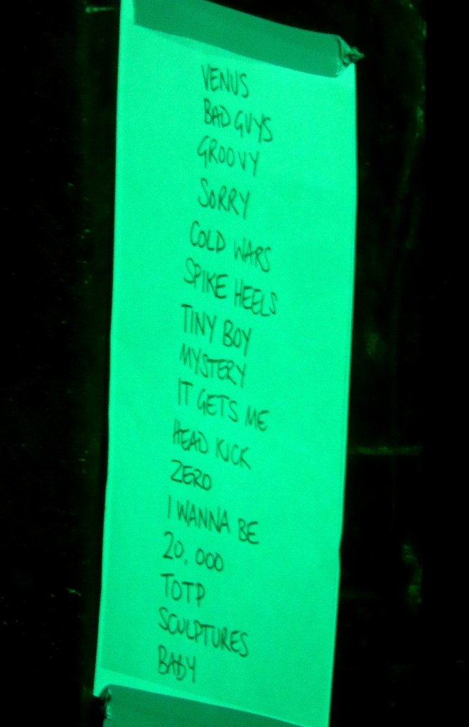 This didn’t ruin it though – dampening ear plugs in – a whole set of classic power pop including: ‘Get Over You’, ‘Male Model’, ‘Teenage Kicks’, ‘When Saturday Comes’, and, the only song I’ve ever “performed” as karaoke in public, ‘My Perfect Cousin’. Beautifully straightforward pleasure…not my karaoke outing I hasten to add.
