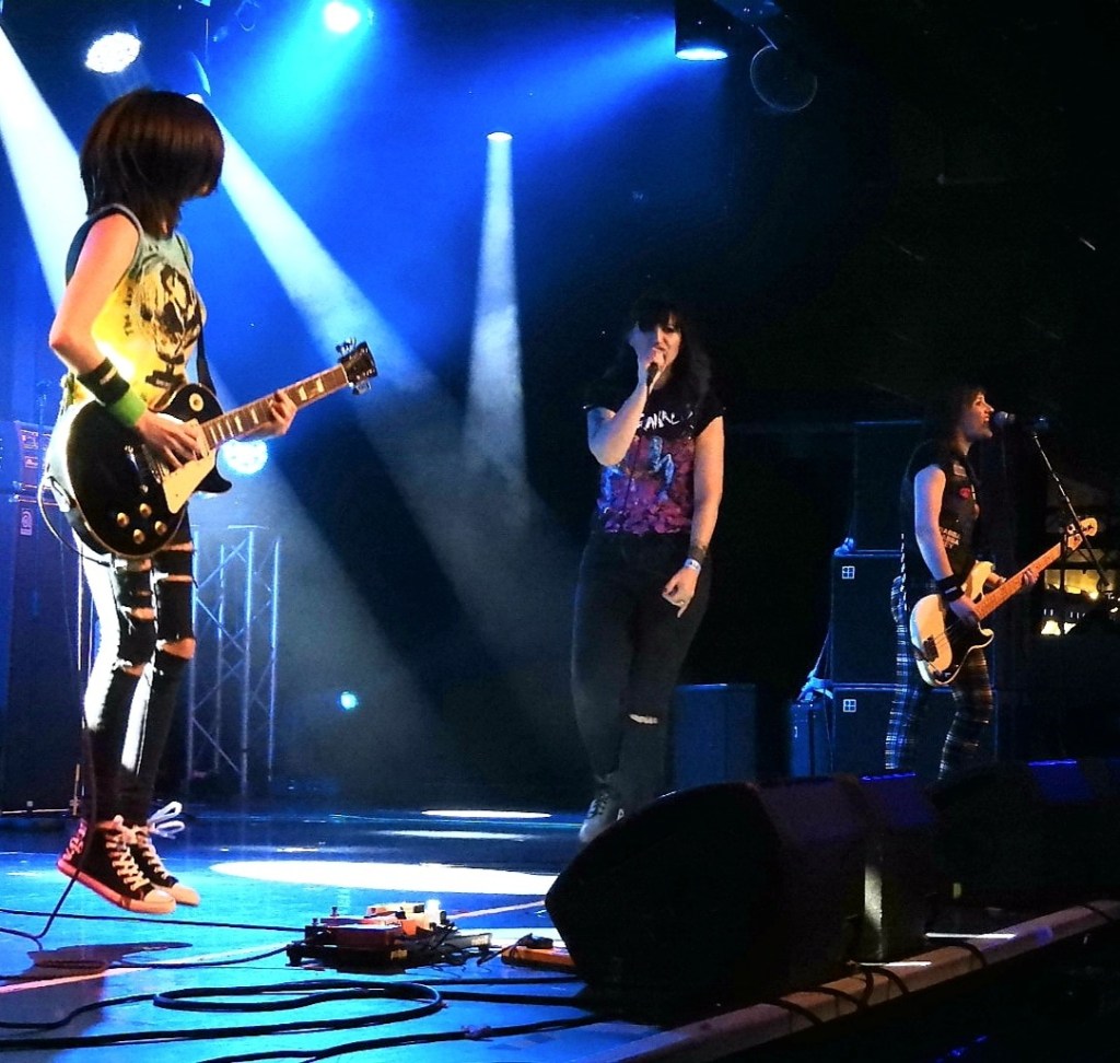 As with Johnny, Joey, Dee Dee, Tommy /Marky (Ritchie and CJ) they have their Ramona aliases too: Cloey (Lisa – vocals); Pee Pee (Vicky – bass); Cammy (Camille, drums) and Rohnny (Maxine – guitar).