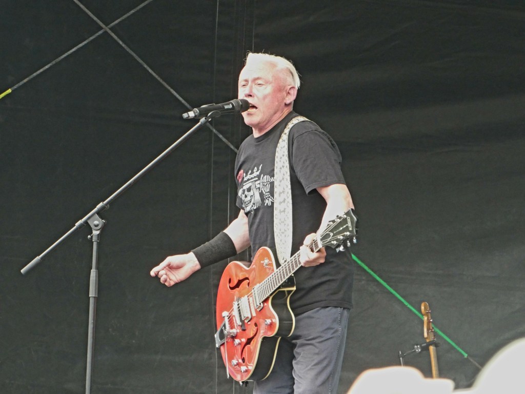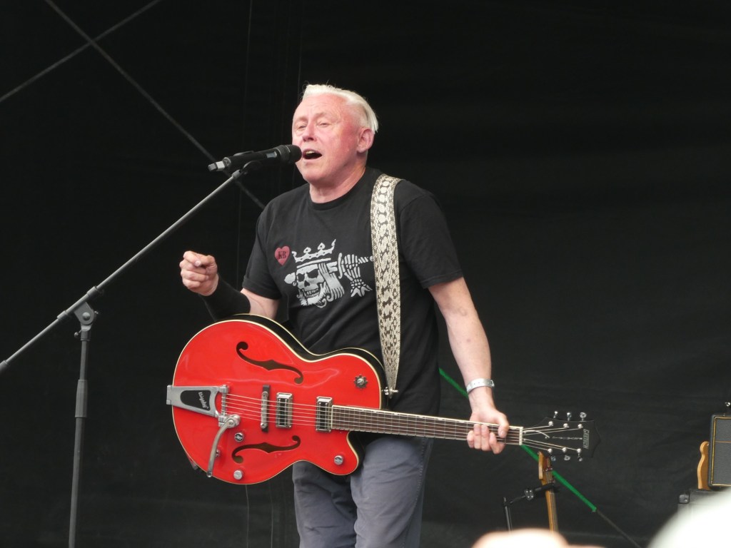 Missed the first band, again, (Cherym) and got in just as Hersham heroes, Sham 69, took to the stage. I don’t know what magic potion Jimmy Pursey has been taking but aside from the excitement of hearing the chanted choruses of my youth, I was transfixed by his flexibility and knee strength. Perhaps I was just jealous as my knees appear to require some attention. Still, I made it here eh.