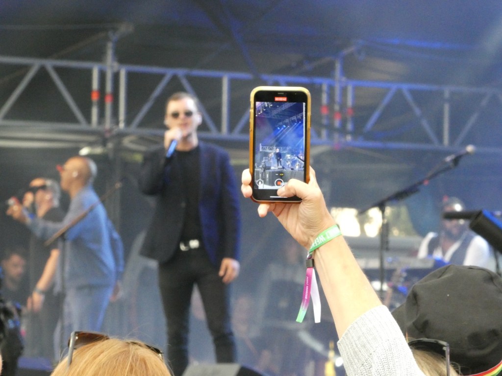 After one song Lydon noticed a chap doing a BBQ up on his smart flat’s balcony, right overlooking the Custom House Square. ‘You c@nt – you ‘aven’t paid‘ pointing up at the chinking wine glasses and smoke. To be fair the chap had ear buds in and didn’t appear to be listening. All in good humour.